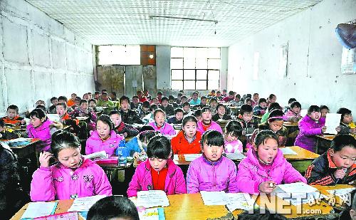 撩開(kāi)六年級(jí)教室的門(mén)簾,里面的景象讓記者吃驚:教室里密密麻麻坐滿了學(xué)生,頭排課桌與黑板的距離不到1米。要想走到教室里面去,像記者這樣的成年人甚至只能側(cè)身而過(guò)。
