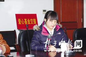 昨天,母校南京66中將小朱高中生活費(fèi)剩余的1.8萬(wàn)元轉(zhuǎn)交到揚(yáng)州職大領(lǐng)導(dǎo)手中的時(shí)候,堅(jiān)強(qiáng)的小朱再也抑制不住淚水。在場(chǎng)的老師們都很驚訝,這位堅(jiān)強(qiáng)的女孩竟把“身世”隱瞞了這么長(zhǎng)時(shí)間!“高中母校已經(jīng)為我付出太多太多了,我不想再讓現(xiàn)在就讀的大學(xué)也為我操心,我不想連累太多人……”朱曉娟哽咽著說(shuō)。