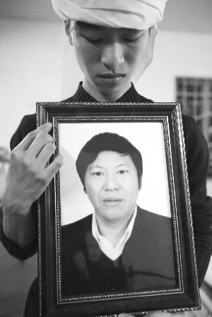 趙老師的靈堂就設(shè)在學(xué)校教學(xué)樓后面的一座平房內(nèi),蓋著大紅棉被的趙老師的遺體靜靜地躺在那里。靈堂內(nèi),不時有師生前來祭拜趙老師。