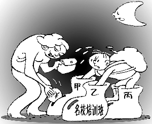 “這幾年為孩子報(bào)各種班可沒(méi)少花錢。”格格媽粗算了一下,僅在“巨人”的英語(yǔ)班從去年暑假到今年寒假就花了8000多元,加上“學(xué)而思”的奧數(shù)班,還有目標(biāo)校的“占坑”班,這兩年加起來(lái)花了25000多元。目標(biāo)校培訓(xùn)班,一個(gè)學(xué)期1000多元,一年就是2000多元,每個(gè)班30多個(gè)孩子,13個(gè)班左右,目標(biāo)校的培訓(xùn)班一年就能收78萬(wàn)元,民間機(jī)構(gòu)辦的班、收的費(fèi)就更多了。