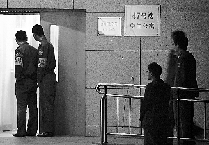 昨日傍晚6時(shí)35分,47號(hào)學(xué)生公寓南側(cè)地面上橫躺著墜樓男女的遺體,其中女孩身穿桃紅色睡衣,身下有大片血跡,男孩身穿灰色T恤衫,下穿牛仔褲。