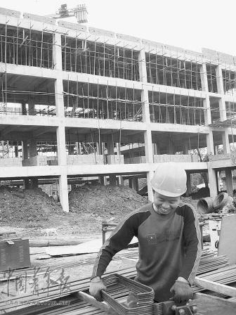 4月27日,記者來到四川省德陽市中江縣輯慶中學(xué)。在新校舍的施工現(xiàn)場,輯慶中學(xué)辦公室主任劉三貴告訴記者,震后,輯慶中學(xué)的校舍全部成為危房,經(jīng)專家論證,決定進(jìn)行原址重建,重建的輯慶中學(xué)總占地41.44畝,其中新征地32.4畝,拆遷21戶。