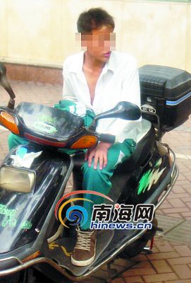 一學(xué)生騎著摩托車等同學(xué)。南國(guó)都市報(bào)記者李小崗 攝