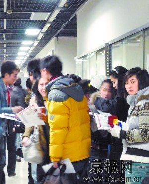 已經(jīng)工作兩年的張琳今天上午趴在電影學院教學樓大廳的椅子上認真填著報名表,他準備報考電影攝影專業(yè),已經(jīng)在中戲讀大三的弟弟站在他身后為他做報考指導。