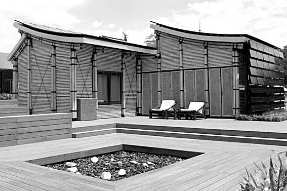 來自9個國家的17所大學參加了本次競賽。同濟大學“太陽能竹屋”以竹子為主要建材,其設(shè)計既體現(xiàn)了中國古典建筑的節(jié)能理念和美學元素,又巧妙運用了先進的太陽能光伏技術(shù)。竹屋采用中國古典建筑反宇屋頂結(jié)構(gòu)元素,曲線的屋頂既能實現(xiàn)光伏電池板發(fā)電效率最大化,又有利于通風散熱;而“一室一廳”的院落格局則在體現(xiàn)中國傳統(tǒng)水鄉(xiāng)民居特色的同時悄然改善室外環(huán)境的微氣候。