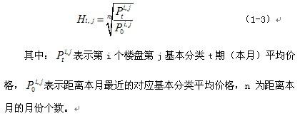 對于該類樓盤,依據(jù)該樓盤本月之前三個(gè)月內(nèi)離本月最近的各分類成交數(shù)據(jù)計(jì)算各分類平均價(jià)格,再利用下列計(jì)算公式計(jì)算基本分類環(huán)比價(jià)格指數(shù):