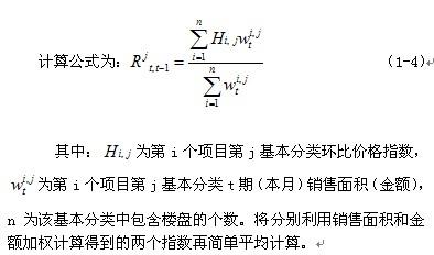 根據(jù)70個(gè)大中城市基本分類月環(huán)比價(jià)格指數(shù)分別利用各城市本月銷售面積和金額作為權(quán)數(shù)計(jì)算價(jià)格指數(shù),然后將兩個(gè)價(jià)格指數(shù)簡單平均。