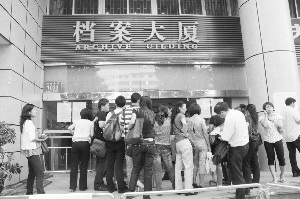 中國證券報(bào)記者在檔案大廈四樓業(yè)務(wù)大廳看到,一間100平方米左右的房間開設(shè)了7個(gè)服務(wù)窗口,每個(gè)窗口前都擠滿了人。而在檔案大廈外面,沒能排到號(hào)的市民遲遲不愿離去,任憑保安反復(fù)解釋,人群仍是相當(dāng)激動(dòng)。