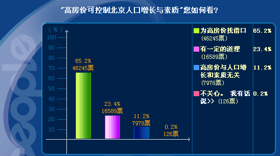 據(jù)人民網(wǎng)調(diào)查,有超過七成五的網(wǎng)民對13日任志強(qiáng)在北京市政協(xié)十一屆二次會(huì)議上聲稱的關(guān)于“房價(jià)本身就是控制人口增長與控制人口素質(zhì)的門檻”的觀點(diǎn)明確表示反對。