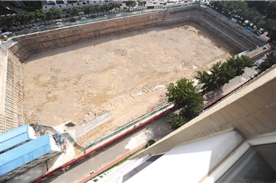 出于對安全隱患的擔憂,世貿國際公寓的業(yè)主通過各種渠道向相關部門反映問題!霸镜臓尾樓有水泥地基加固,坑面積也不大。我們都相安無事,F在他們越挖越大,坑面積大了3倍,往我們小區(qū)方向推進了8米,也挖深了不少,嚴重威脅小區(qū)樓體的安全!睒I(yè)主何先生等人對該工程施工的合理性表示質疑。