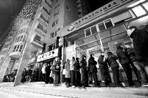 老張為女兒買了套二手房,本來可以由中介業(yè)務員來代為排隊納稅。但他放心不下、怕出差錯,決定親自出馬熬夜排隊。前日19時許,他開始在銀行旁的朝陽區(qū)第二地稅所門外守候。至昨日清晨4時許,已有50余人排在其后,并肩“戰(zhàn)斗”。