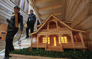 “真好看,就跟童話里的小木屋一個感覺!苯裉焐衔纾趧倓傞_展的第八屆中國國際住宅產(chǎn)業(yè)博覽會上,一棟全實(shí)木搭建的小別墅吸引了眾多參觀者的目光。
