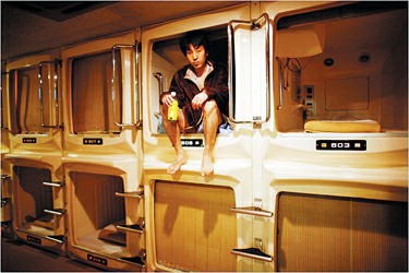 受金融危機傷害,日本大城市不少失業(yè)或面臨失業(yè)的“蟻族”不得不入住只能橫著爬進(jìn)去的“蝸居”——“膠囊旅社”。
