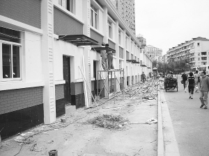 人行道上蓋起一排房屋,行人只能走到馬路上,汽車、助動(dòng)車不時(shí)擦身而過(guò),險(xiǎn)象環(huán)生。昨天,讀者殷先生致電本報(bào),反映南車站路西側(cè)人行道上突然“長(zhǎng)出”一排房屋。