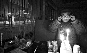 由于停水停電無暖氣,陸大任只能去附近居民家借水,并用爐子燒蜂窩煤取暖。前日,蜂窩煤爐也被相關(guān)管理部門收走。陸大任現(xiàn)在24小時在店里,天冷,他就穿上厚厚的軍大衣和棉褲。
