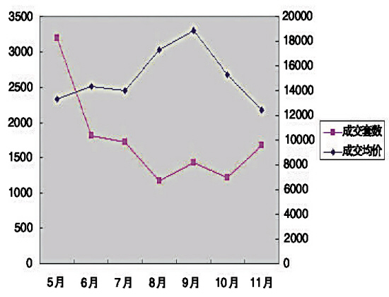 今年杭州主城區(qū)商品房5月成交3189套,成交均價13340元/平方米;6月成交1810套,成交均價14309元/平方米;7月成交1714套,成交均價13978元/平方米;8月成交1174套,成交均價17324元/平方米;9月成交1432套,成交均價18912元/平方米;10月成交1222套,成交均價15308元/平方米;11月成交1677套,成交均價12467元/平方米。
