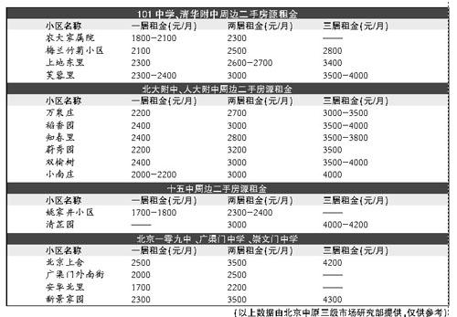 為此,本報特對部分名校周邊重點租賃項目的租金情況進(jìn)行盤點,希望能給備考的學(xué)子和家長們予以幫助。(見表)