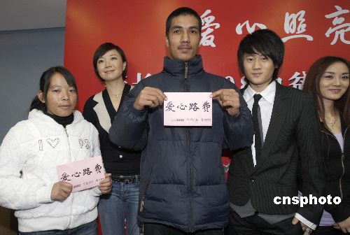 1月2日,臧天朔、葉蓓、江一燕等藝人在北京為不能回家過(guò)年的貧困大學(xué)生資助回家的路費(fèi)。中國(guó)扶貧基金會(huì)“新長(zhǎng)城”項(xiàng)目發(fā)起“愛(ài)心照亮回家路——資助貧寒學(xué)子回家過(guò)年”慈善活動(dòng),臧天朔等眾多藝人出席活動(dòng)并現(xiàn)場(chǎng)捐款。此次活動(dòng)將幫北京地區(qū)的眾多貧困大學(xué)學(xué)子得到回家過(guò)年的路費(fèi),讓他們能夠回家與家人團(tuán)聚。中新社發(fā) 杜洋 攝