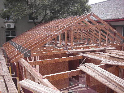 據(jù)介紹,竹結(jié)構(gòu)住宅所用的結(jié)構(gòu)構(gòu)件和連接件都是采用工廠標(biāo)準(zhǔn)化生產(chǎn),蓋房子就像搭積木一樣。施工過(guò)程類似于北美的平臺(tái)式輕型木結(jié)構(gòu)住宅施工,其樓蓋和墻體分開(kāi)建造,因此已建成的底層樓蓋可以作為上部墻體施工時(shí)的工作平臺(tái)。通常墻體骨架可在工作平臺(tái)上拼裝,然后人工抬起就位。墻體也可在其他地方先拼裝好,再運(yùn)到施工現(xiàn)場(chǎng)就位。