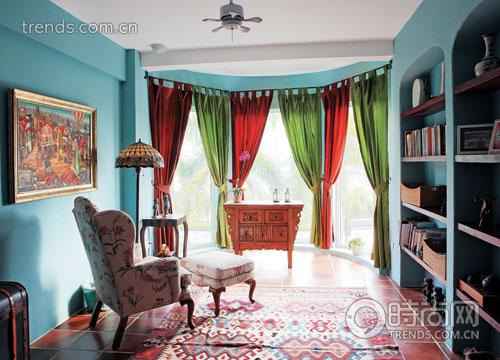 二樓開放式會客偏廳,也是擺放飾物最多的一角,色彩的運用恰到好處。