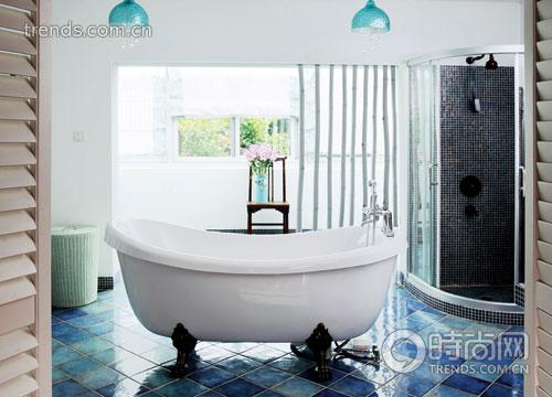 細(xì)節(jié)是小米比較關(guān)注的。主浴室兼顧了清潔與休閑兩個(gè)功能,地面是湛藍(lán)湛藍(lán)的光面磚,白色的墻身,延續(xù)著地中海的藍(lán)與白,“因?yàn)樵∈易钪匾墓δ苁欠潘,所以選擇的色系盡量簡單純凈,用刷白了的竹子作為大空間的隔斷,主要是做視覺上的劃分,分隔出清潔區(qū)與休閑區(qū):清潔區(qū)就是浴缸及洗手盆那一區(qū),主要突出功能的一面;我將陽臺打通,做出一個(gè)女性都會喜歡的陽光花房作為休閑空間,雅致的淡綠色布簾幔與窗外的綠意相合。浴室就是身心放松的空間,是我設(shè)計(jì)里比較注重的地方!