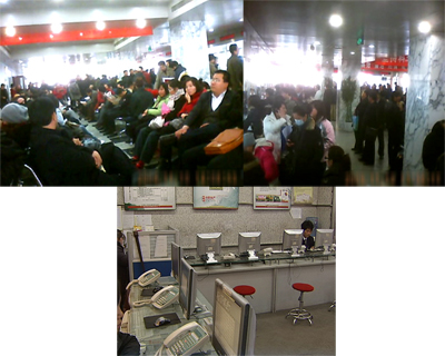 為了了解過戶的實(shí)際情況,記者采用了隱蔽拍攝的方式。在朝陽區(qū)房產(chǎn)交易中心記者看到,整個(gè)大廳到處都是排隊(duì)等待過戶和辦證的購(gòu)房者。幾排座椅已經(jīng)坐滿了人,過道上和各個(gè)窗口都擠滿了人。有的人從早上5點(diǎn)就起來排號(hào),在長(zhǎng)時(shí)間的等待中,甚至都睡著了。由于怕錯(cuò)過號(hào),有的人到了吃飯時(shí)就隨便買點(diǎn)盒飯打發(fā),記者了解到,最近幾周來,這里都是人山人海。