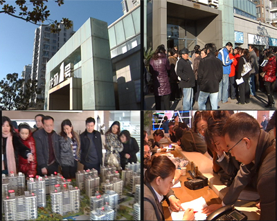 昨天開始,《經(jīng)濟半小時》欄目在新浪、騰訊、網(wǎng)易和MSN等網(wǎng)站上展開了百萬網(wǎng)友房價問卷調(diào)查,您所在的城市房價是多少?您認為推動這一輪房價上漲的原因是什么?房價還會不會漲下去?截止今天下午,已經(jīng)有38萬名網(wǎng)友參加了我們的調(diào)查,也期待有更多的觀眾能積極參與,發(fā)表自己的看法。在展開這次網(wǎng)絡(luò)問卷調(diào)查的同時,我們也對幾個熱點城市的房價進行了實地調(diào)查。今天就來看看上海,有人形容今年上海的樓市可謂一個季節(jié)換一道風(fēng)景,春季是回暖,夏季是井噴,秋季是盤整,F(xiàn)在到了冬季,上海樓市又是一個什么樣的情形?先來看看一個新樓盤開盤的現(xiàn)場。
