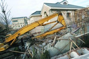 液壓剪拆除完地面部分后,液壓錘上場。長達(dá)1米的鋼鉆頭敲向地下室的天花板,散落的水泥塊和鋼筋掉到地下室內(nèi)。這些水泥塊和鋼筋將直接用來回填地下室,以防止再次擴(kuò)建。