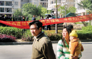 引起糾紛的綠地位于南興花園正門在建小學(xué)教學(xué)樓和住戶樓的中間,面積有近千平方米。
