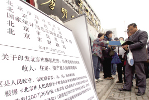 根據(jù)新頒布的城八區(qū)經(jīng)適房、廉租房審核標(biāo)準(zhǔn),街道是申請者要過的第一關(guān)。昨天一大早,東直門街道就接待了50多名申請者,“我們一開門,‘轟’一下子擠進(jìn)一堆人!苯值拦ぷ魅藛T告訴記者,當(dāng)天他們共接待了200多位經(jīng)適房申請者。