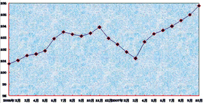 2007年10月房地產開發(fā)投資分類指數(shù)為104.42,比9月份上升0.35點,同比上升2.74點。1月至10月份,全國完成房地產開發(fā)投資19192億元,同比增長31.4%。住宅完成投資13726億元,增長33.7%。其中,經濟適用住房投資618億元,增長32.2%。