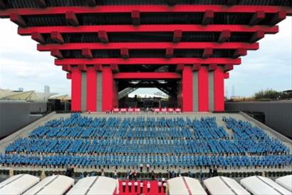 世博園內(nèi),“小白菜”們夾道歡迎老師們?nèi)雸?chǎng);中國(guó)館前,2010名老師莊嚴(yán)宣誓,并共同唱響《教師之歌》。昨天是第26個(gè)教師節(jié),“奉獻(xiàn)世博·奠基未來(lái)”——2010年上海市慶祝教師節(jié)主題系列活動(dòng)之宣誓儀式在中國(guó)館南廣場(chǎng)舉行。市委副書(shū)記殷一璀出席儀式并致辭,副市長(zhǎng)沈曉明出席。