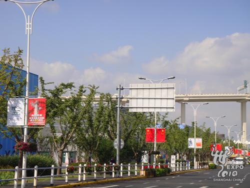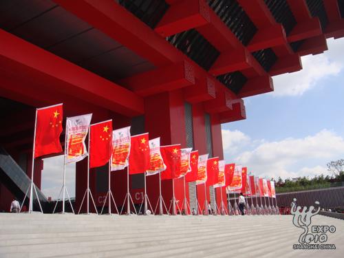 中國(guó)國(guó)家館9米、14米平臺(tái)及周邊地區(qū)、世博大道、各出入口和世博軸相關(guān)區(qū)域都進(jìn)行了精心布置,共懸掛招風(fēng)旗近400對(duì)、墻貼20余幅、巨幅插旗24面,園區(qū)處處洋溢著濃郁的節(jié)日氣氛。