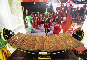 在香通寺模型周?chē),還有形式多樣的展品,如當(dāng)?shù)靥厣你~鑼、木琴、名貴紅木手工藝品、現(xiàn)場(chǎng)制作的稻香咖啡等。