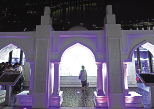 走進(jìn)展館,仿佛置身于首都巴庫的老城區(qū)——內(nèi)城。阿塞拜疆是人類最古老的定居地之一,巴庫古城至今完整保留著修建于12世紀(jì)的汗王宮殿建筑,被稱為“內(nèi)城”,擁有迷宮般的狹窄巷道,景致如畫。