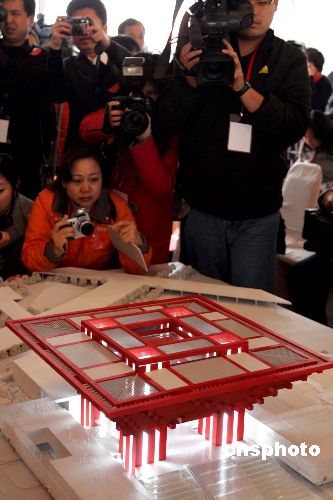 十二月十八日,凝聚全球華人智慧的中國二0一0年上海世博會中國館在上海黃浦江畔舉行開工典禮。據(jù)介紹,作為上海世博會的永久性場館之一,總用地面積為六點五二公頃,總預(yù)算十五億元人民幣。整個中國館區(qū)由國家館、地區(qū)館、港澳臺館等三個部分組成。中新社發(fā) 潘索菲 攝