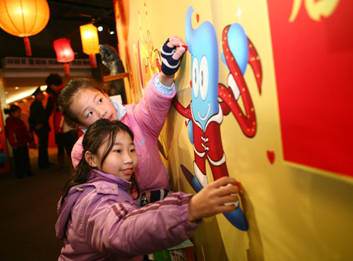 今年除夕和大年初一,上海世博會展示中心照常開放。“海寶及第送吉祥,金牛抖擻迎新春”,為和觀眾一起高高興興過新年,上海世博會展示中心為觀眾特別安排了豐富多彩的 新年活動套餐,有“海寶吉祥傳播”、“粘貼世博中國心”、“世博燈謎有獎大家猜”、“幸運(yùn)魔方大玩轉(zhuǎn)”等。