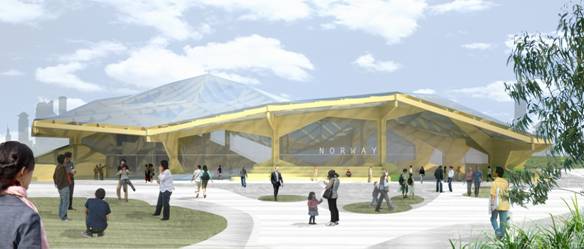 在上海世博會期間,挪威將在世博浦東園區(qū)C片區(qū)建設占地3000平方米的自建館。挪威此次以“挪威•大自然的賦予”為主題參展上海世博會,展館將由15棵巨大的“樹”構(gòu)成,模型樹的原材料來自木頭和竹子,并可在展后再利用,充分體現(xiàn)了 “可持續(xù)發(fā)展”的理念。