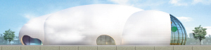 這個命名為“云中水滴”的展館外觀采用亮白色膜結構,形如云狀,膜布上均勻布滿噴霧點。當噴霧全部開啟時,整個展館宛若一朵漂浮在霧氣中若隱若現(xiàn)的白云。如果此時陽光高度角恰好小于42度,游客就可以在世博園區(qū)內欣賞到“霧中彩虹”。