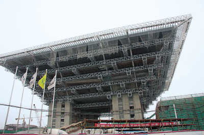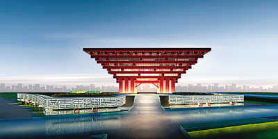 中國國家館以“東方之冠”為構(gòu)思主題,取自中國古代木結(jié)構(gòu)建筑中的元素——斗拱。16字設(shè)計(jì)理念體現(xiàn)了中國文化的深厚積淀:“東方之冠,鼎盛中華,天下糧倉,富庶百姓”。主色調(diào)運(yùn)用傳統(tǒng)、沉穩(wěn)的“故宮紅”。世博會期間,中國館將展現(xiàn)一幅宏偉的城市文明圖。