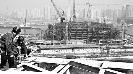 中新網(wǎng)3月21日電 據(jù)上海世博會(huì)官方網(wǎng)站消息,目前,世博演藝中心鋼結(jié)構(gòu)工程已進(jìn)入最后沖刺階段,至昨天已完成鋼結(jié)構(gòu)吊裝30000余噸,占總工程量的90%,整個(gè)鋼結(jié)構(gòu)將于3月底完成。由上海機(jī)施公司承建的世博演藝中心,飛碟狀的建筑外形既時(shí)尚現(xiàn)代,又充滿未來氣息,猶如黃浦江畔的一只“藝海貝殼”。在世博會(huì)期間,演藝中心將承擔(dān)各類大型演出活動(dòng)。