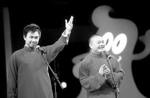 圖為居民在表演自編相聲《話說世博》。張海峰 攝