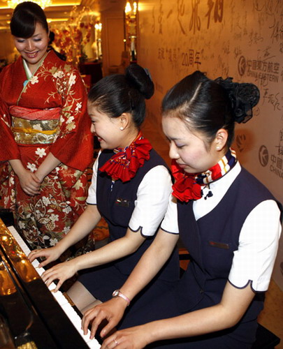 慶典儀式通過圖片展和影像資料展示了從1989年至今的20年里的“凌燕”2光輝歷程。現(xiàn)場數(shù)十名“凌燕”機組人員通過調(diào)酒、烹飪、手語、太極等表演形式展現(xiàn)了“凌燕”組員多才多藝和“至尊、至誠、至精、至美”的服務(wù)理念。