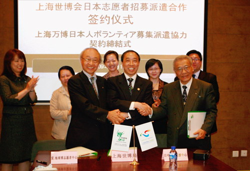 上海世博會志愿者招募工作已于5月1日正式啟動,面向全球招募七萬園區(qū)志愿者與十萬城市服務站點志愿者。目前,兩家機構(gòu)已合作成立了“上海世博志愿者協(xié)力實行委員會”,專門負責日本志愿者的招募派遣工作,以及對日本志愿者進行上海世博會基本情況、中國國情、中文等方面的培訓。