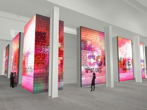 香港案例展覽結(jié)構(gòu)高6米,占地約530平方米。展覽結(jié)構(gòu)的光滑外墻會(huì)顯示動(dòng)畫(huà)影像,影像隨著參觀人流的模式而轉(zhuǎn)變。每個(gè)影像點(diǎn),代表著一名進(jìn)入展覽場(chǎng)地或?yàn)g覽網(wǎng)上展覽的參觀者。參觀者進(jìn)入展覽后,便仿如置身于充滿動(dòng)感的影片當(dāng)中。