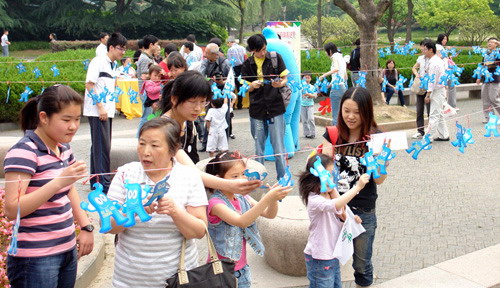 活動(dòng)從早上9點(diǎn)開始,每位到場(chǎng)的小朋友均能獲得一個(gè)美麗的風(fēng)車,無數(shù)的風(fēng)車在晨風(fēng)中不停地轉(zhuǎn)動(dòng),轉(zhuǎn)出一道道亮麗繽紛的色彩。當(dāng)天的徐家匯公園被劃分為6個(gè)版塊,既有“海寶博士”猜謎語、世博知識(shí)500問活動(dòng),又有折紙面塑等民間藝術(shù)活動(dòng),引導(dǎo)孩子們剪海寶,折海寶和塑海寶。在親子廣場(chǎng)中,天真的孩童通過“親子劇場(chǎng)”這一品牌欄目,用兒童劇的形式,演繹對(duì)世博的向往。