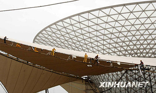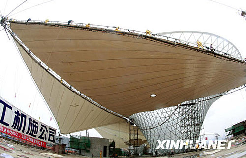 6月29日,目前世界第一、面積達(dá)1780平方米的一塊巨型A級(jí)膜布安裝到上海世博園世博軸頂部,此舉意味著世博軸頂部索膜結(jié)構(gòu)工程建設(shè)進(jìn)入最后沖刺階段。世博軸是上海世博園區(qū)最重要的人行立體交通樞紐,由地上2層、地下2層組成,全長(zhǎng)約1公里,連接園區(qū)內(nèi)中國(guó)館、主題館、世博中心、演藝中心等永久性場(chǎng)館,以及主要軌道交通線(xiàn)。