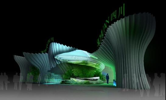 展館外立面是用多媒體構成的川字造型立柱,立體展現(xiàn)飛躍的“太陽神鳥”標識,分別表現(xiàn)四川的文化與水、生態(tài)與水、城市與水。與大山大水展墻相呼應、連接二層的展示平臺,最大限度地合理利用頂面、地面與二層空間,強調氣勢與變化。整個展廳采用半通透式的展示結構,以體現(xiàn)四川人包容和開放的胸襟。