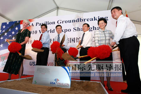 17日,今夏入伏后的第4天,上海最高氣溫升至36攝氏度。幾乎是在“烘烤”的氣氛下,美國(guó)商務(wù)部長(zhǎng)駱家輝、中國(guó)商務(wù)部副部長(zhǎng)馬秀紅、上海市常務(wù)副市長(zhǎng)楊雄以及剛被奧巴馬政府任命為上海世博會(huì)美國(guó)展區(qū)總代表的何塞·維拉里爾、美國(guó)駐滬總領(lǐng)事康碧翠、上海世博會(huì)事務(wù)協(xié)調(diào)局局長(zhǎng)洪浩等共同為美國(guó)館奠基培土。