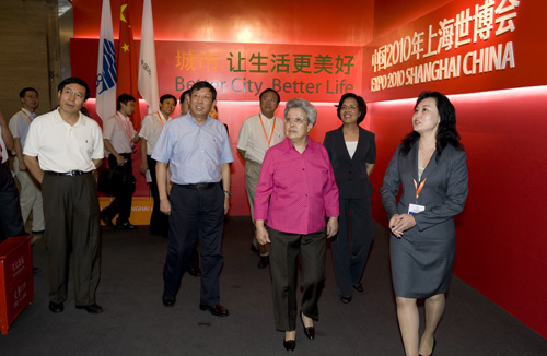 吳儀對(duì)展覽內(nèi)容都十分關(guān)注。她仔細(xì)觀看展品,認(rèn)真聽(tīng)取介紹,并不時(shí)向工作人員詢問(wèn)有關(guān)情況,了解世博會(huì)籌備的最新進(jìn)展,對(duì)籌辦工作取得的成績(jī)給予充分肯定。